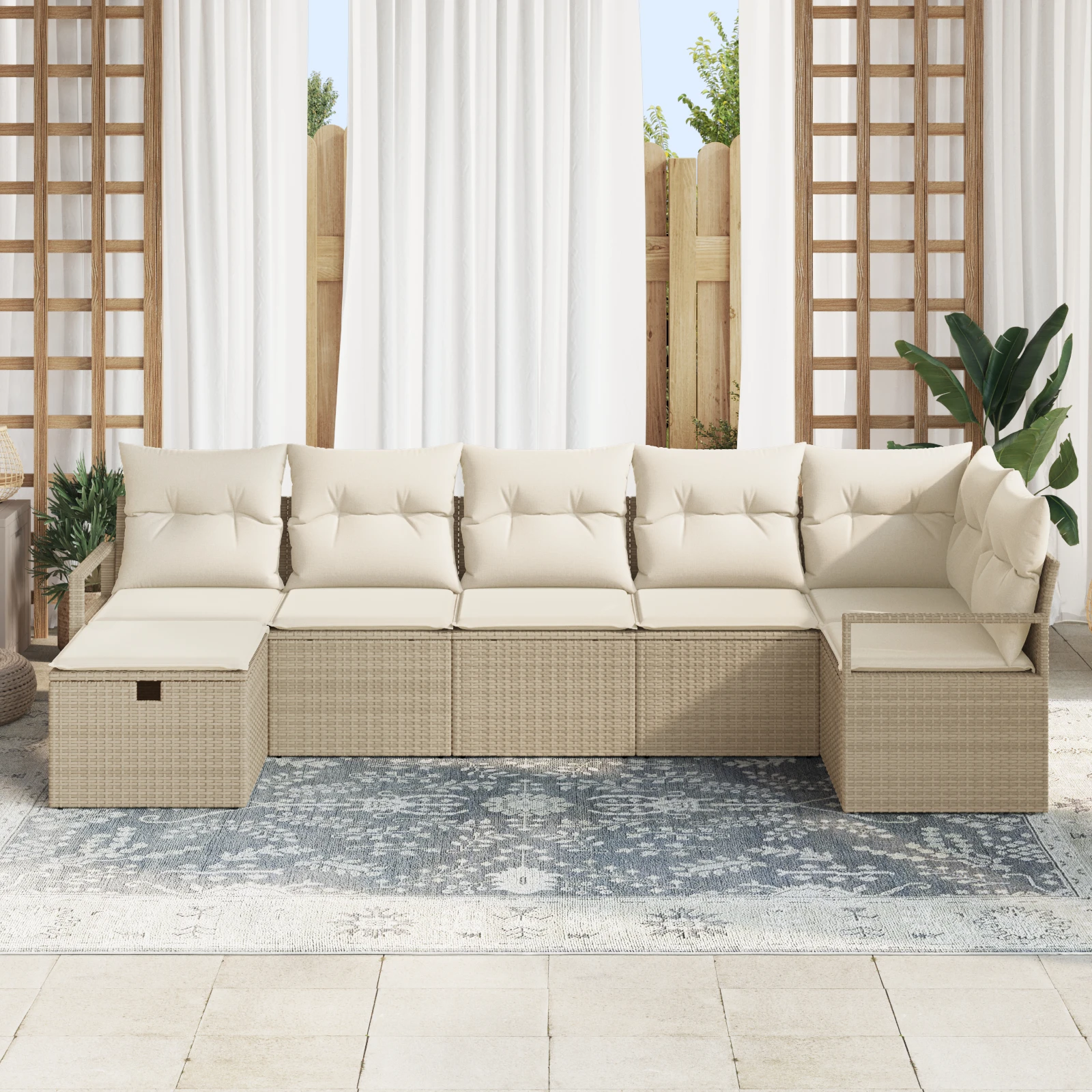 vidaXL Sodo Sofų Rinkinys su pagalve 7 pcs Smėlio Poli ratanas