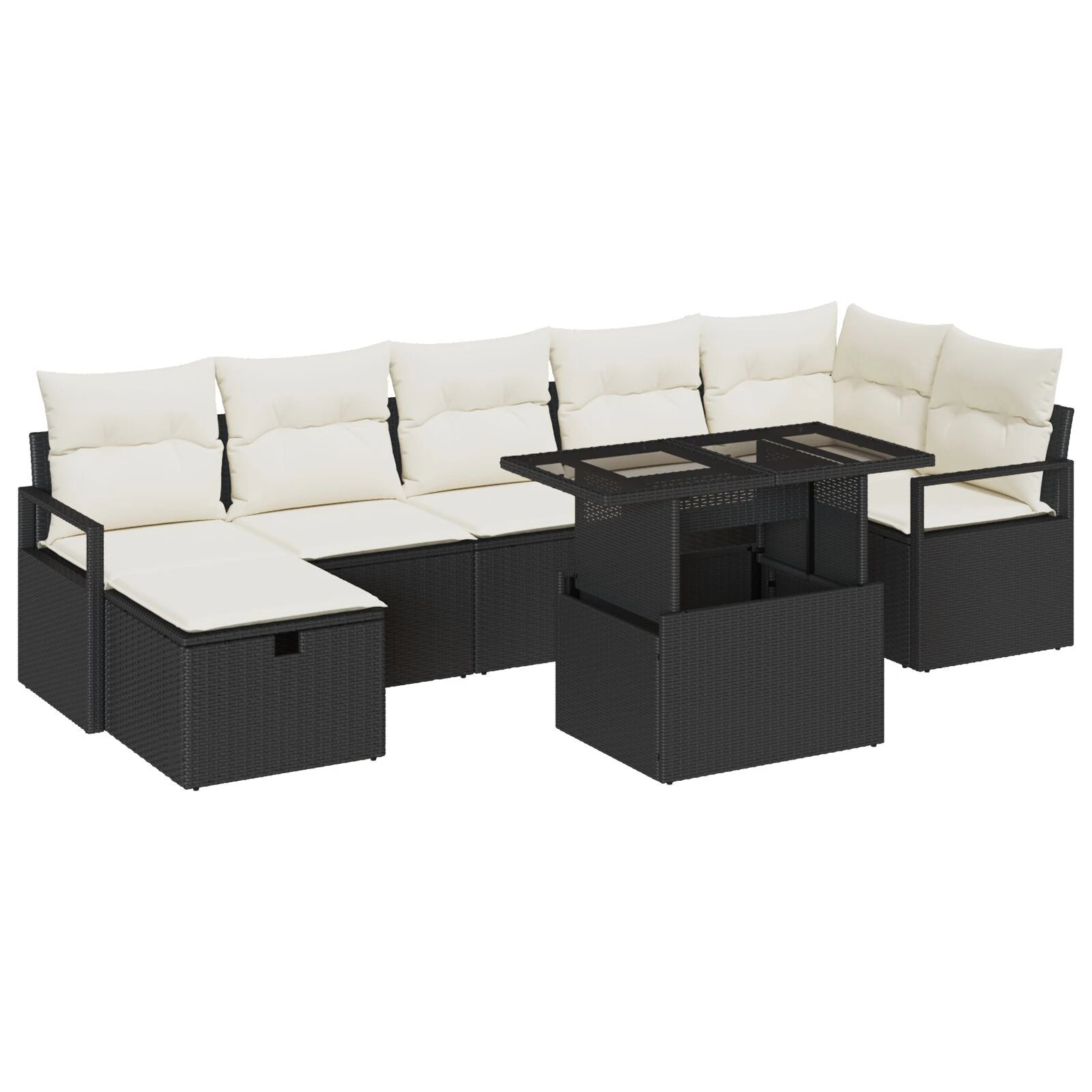 vidaXL Sodo Sofų Rinkinys su pagalve 8 pcs Juoda Poli ratanas