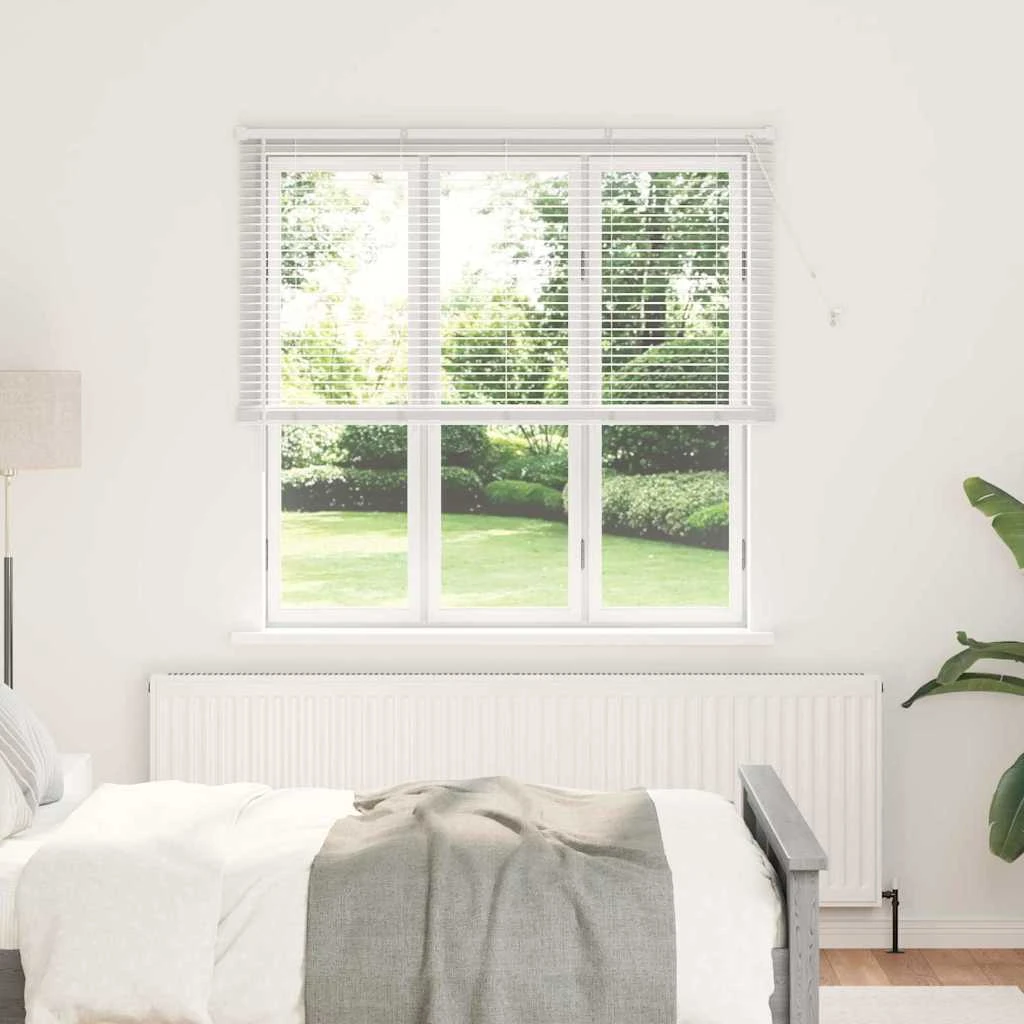 vidaXL Langų žaliuzė su užuolaidomis Balta Aliuminis