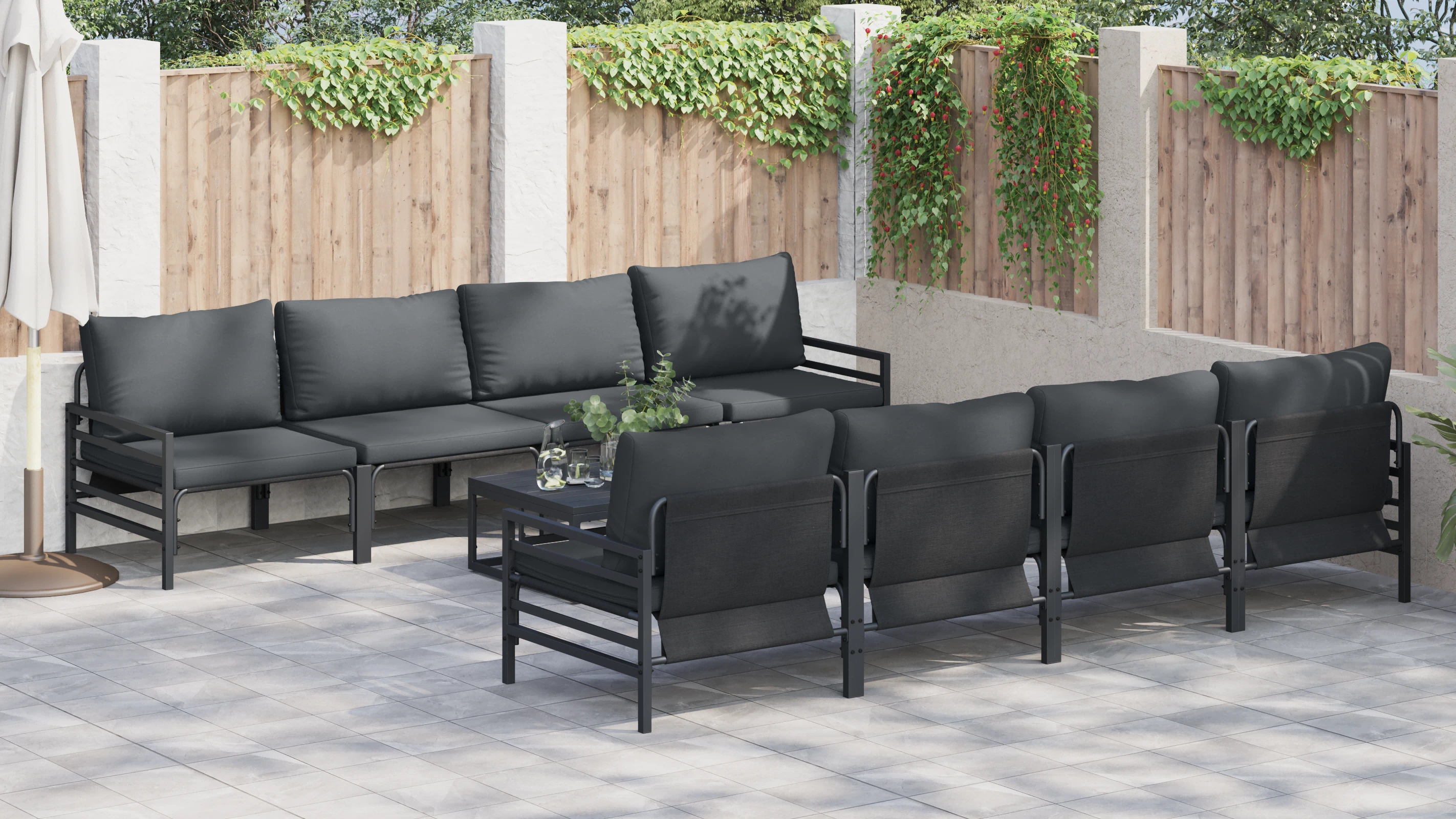 vidaXL Sodo Sofų Rinkinys su pagalve 9 pcs Juoda Plienas