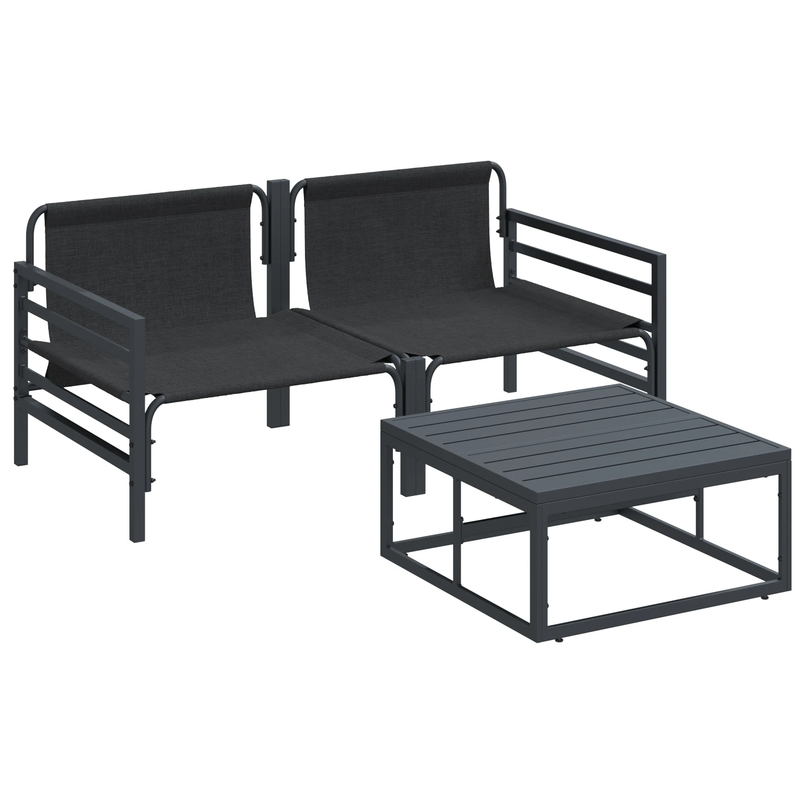 vidaXL Sodo Sofų Rinkinys su pagalve 3 pcs Juoda Plienas
