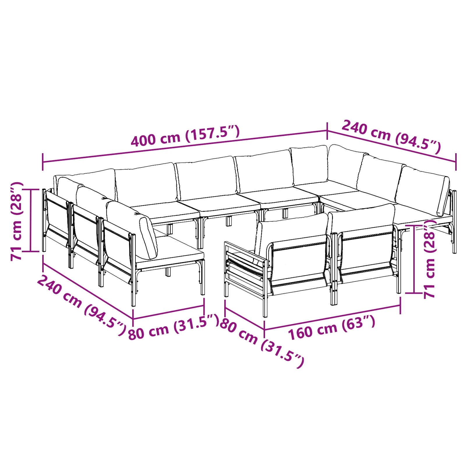 vidaXL Sodo Sofų Rinkinys su pagalve 11 pcs Juoda Plienas