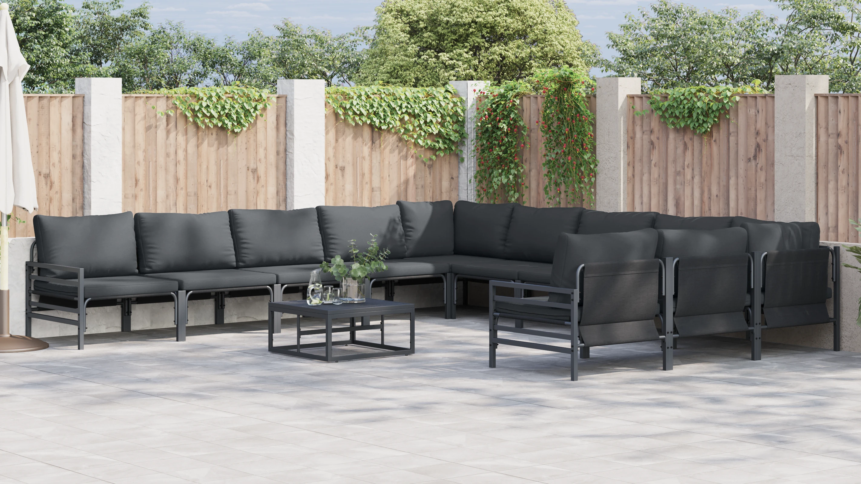 vidaXL Sodo Sofų Rinkinys su pagalve 12 pcs Juoda Plienas