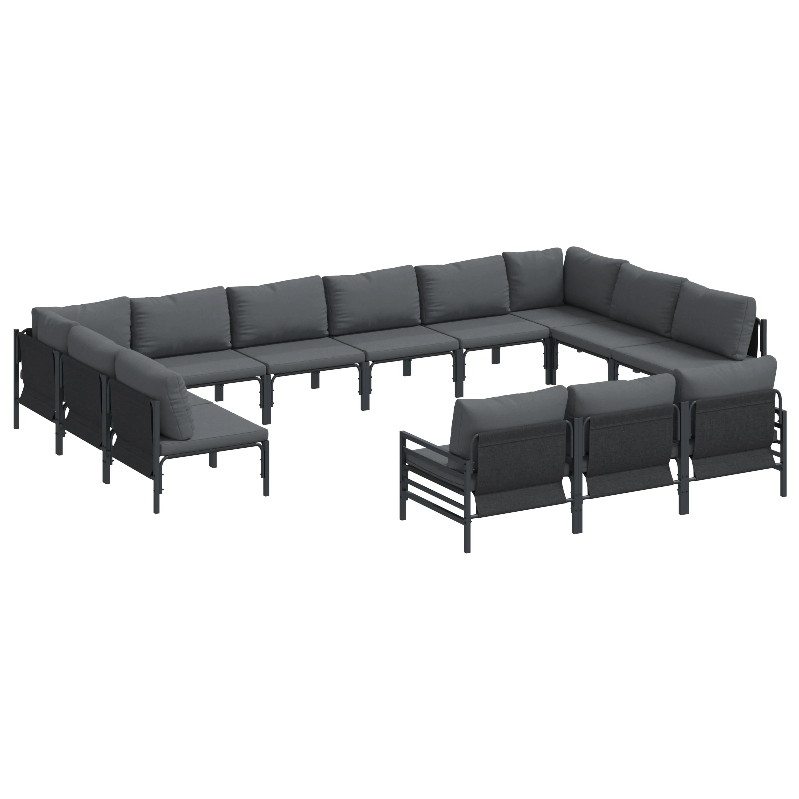 vidaXL Sodo Sofų Rinkinys su pagalve 13 pcs Juoda Plienas