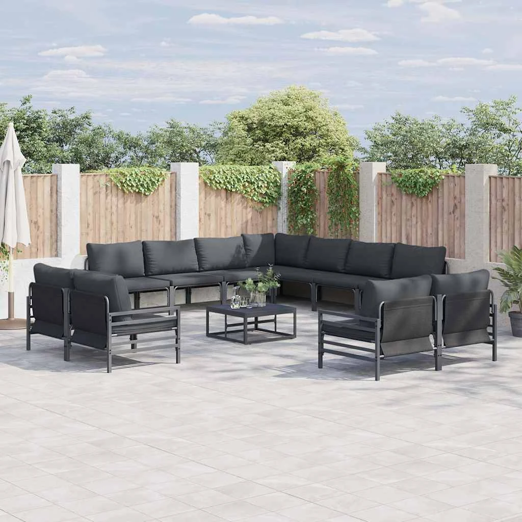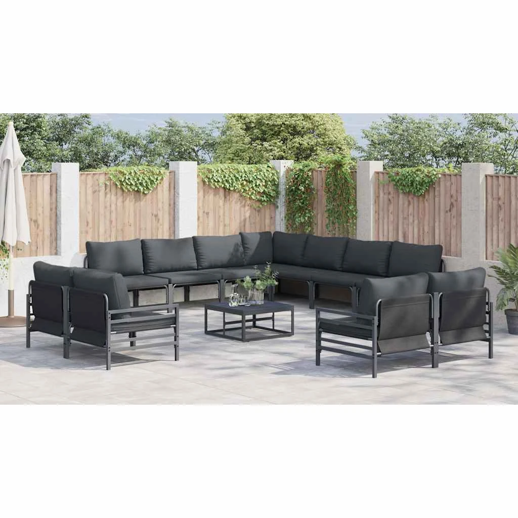 vidaXL Sodo Sofų Rinkinys su pagalve 12 pcs Juoda Plienas