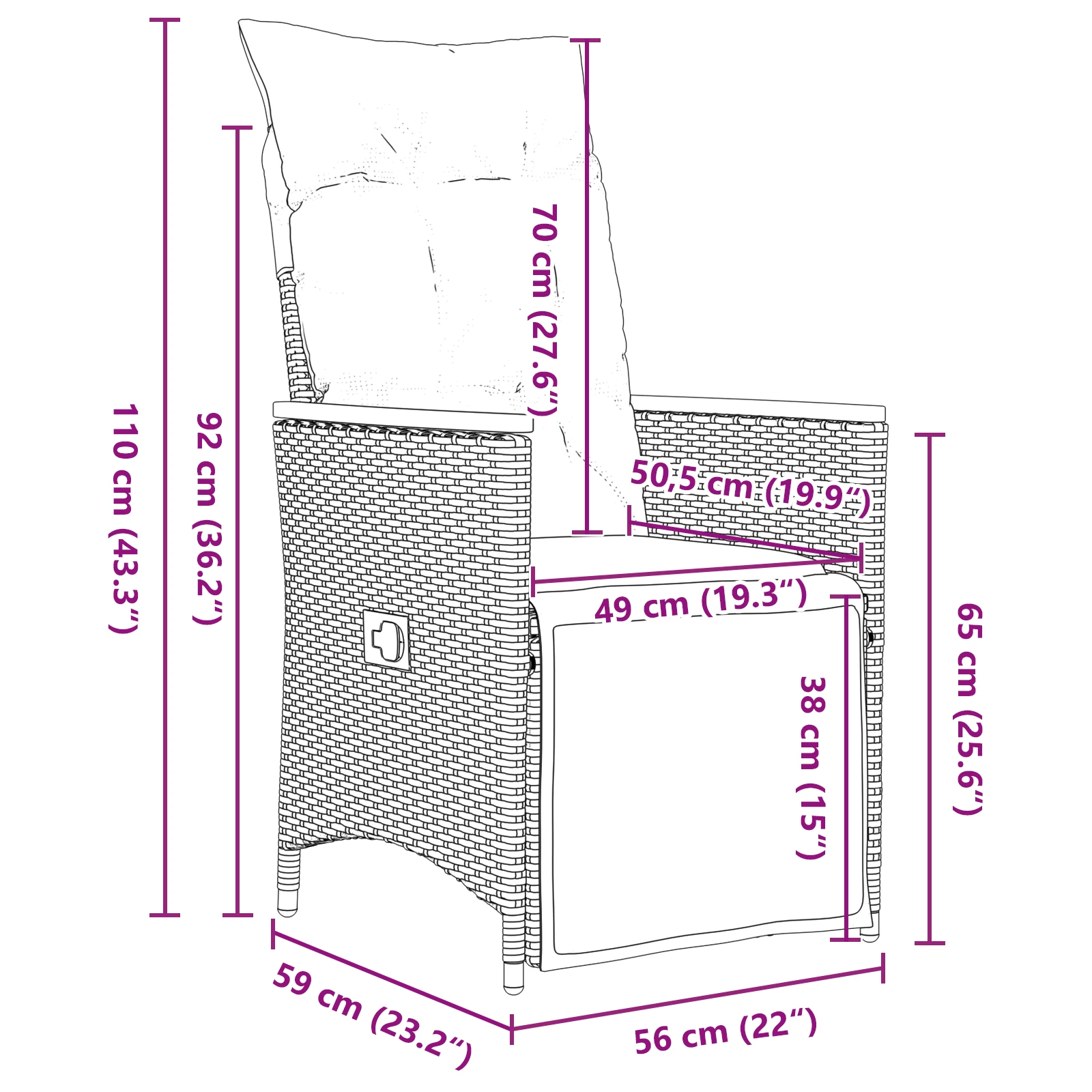 - 6 x Sodo kėdė su pakoju: 56 x 59 x 92 cm (Ilgis x Plotis x Aukštis)