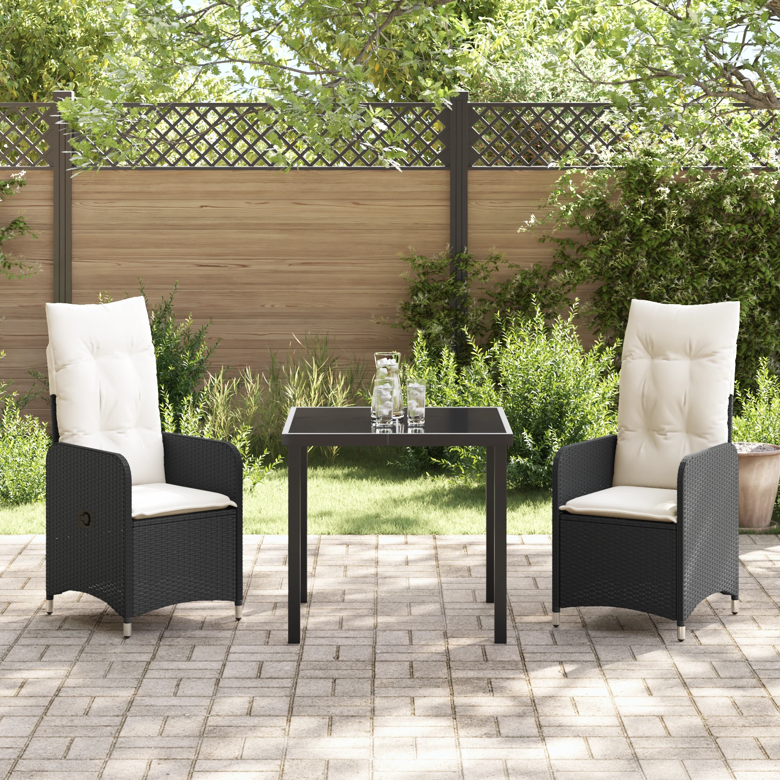 vidaXL Sodo valgomojo komplektas su pagalve 3 pcs Juoda Poli ratanas