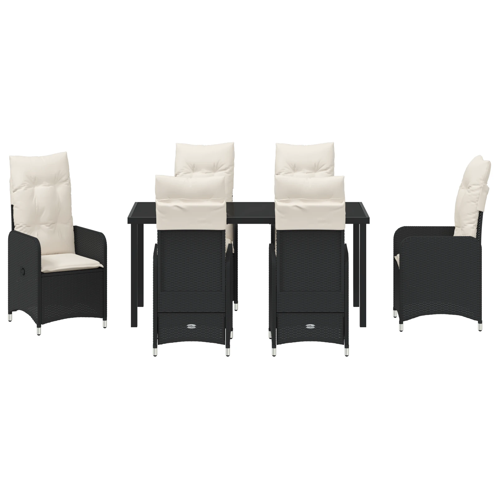 vidaXL Sodo valgomojo komplektas su pagalve 7 pcs Juoda Poli ratanas