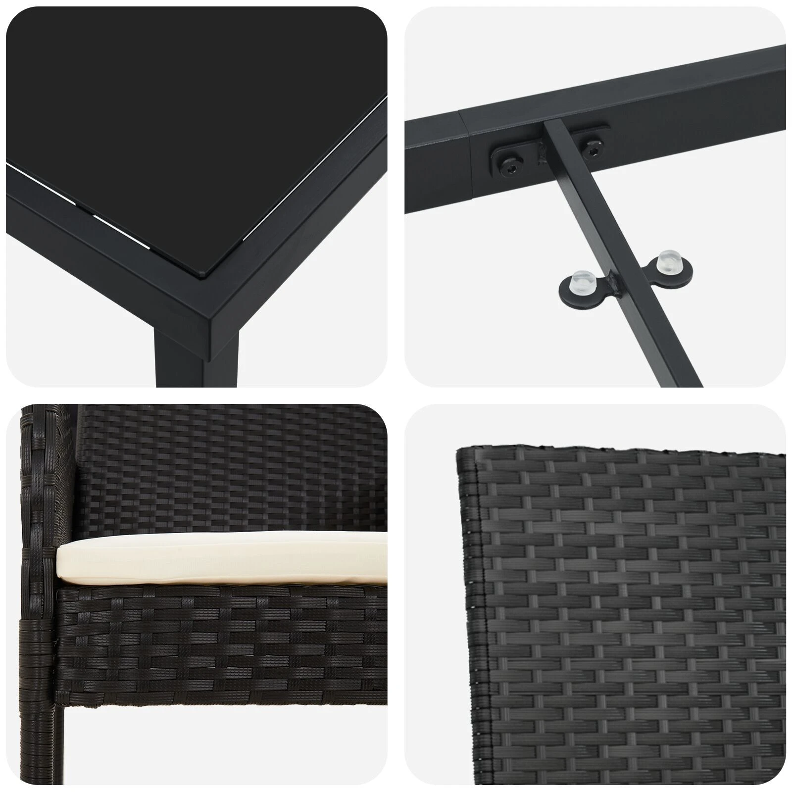 - Premium poli ratanas: Pagamintas iš poli rataninio medžiagos, šis rinkinys yra stilingas ir patvarus. Atsparus oro sąlygoms, jis ilgai išliks, išlaikydamas savo grožį.