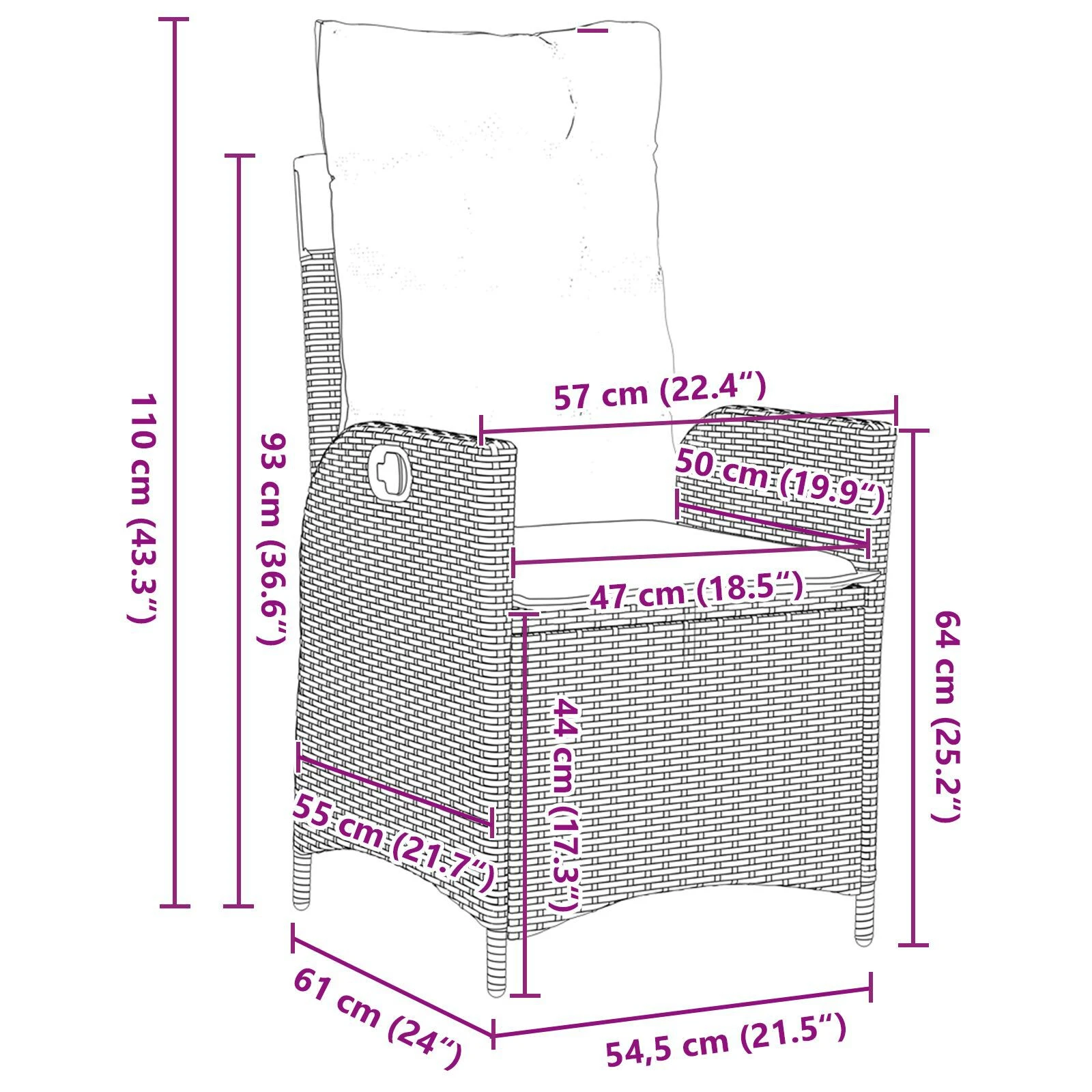 - 4 x Sodo kėdė: 54,5 x 61 x 110 cm (PxAxA)