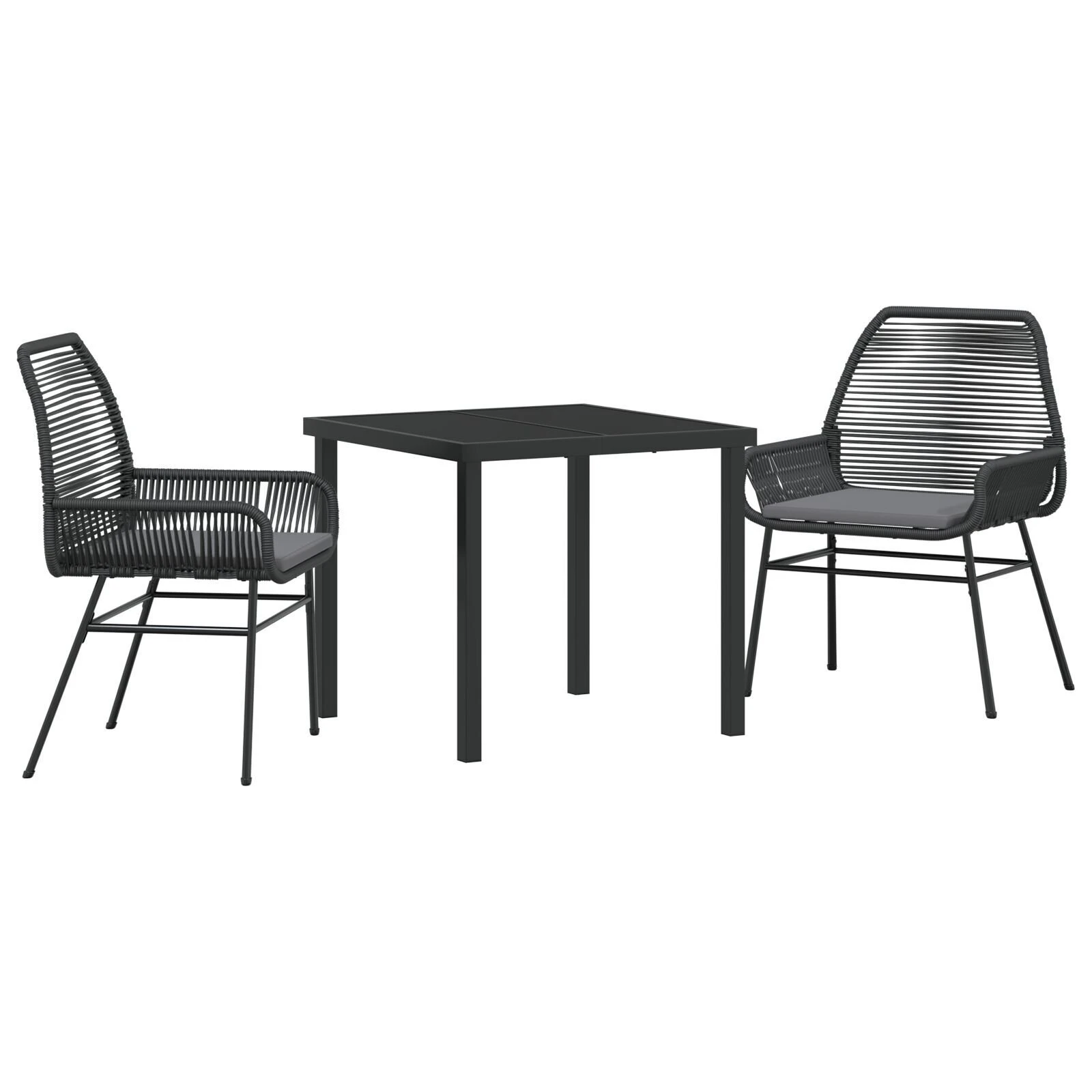 vidaXL Bistro komplektas su pagalvėmis, 3 dalių, juodas, poliratanas