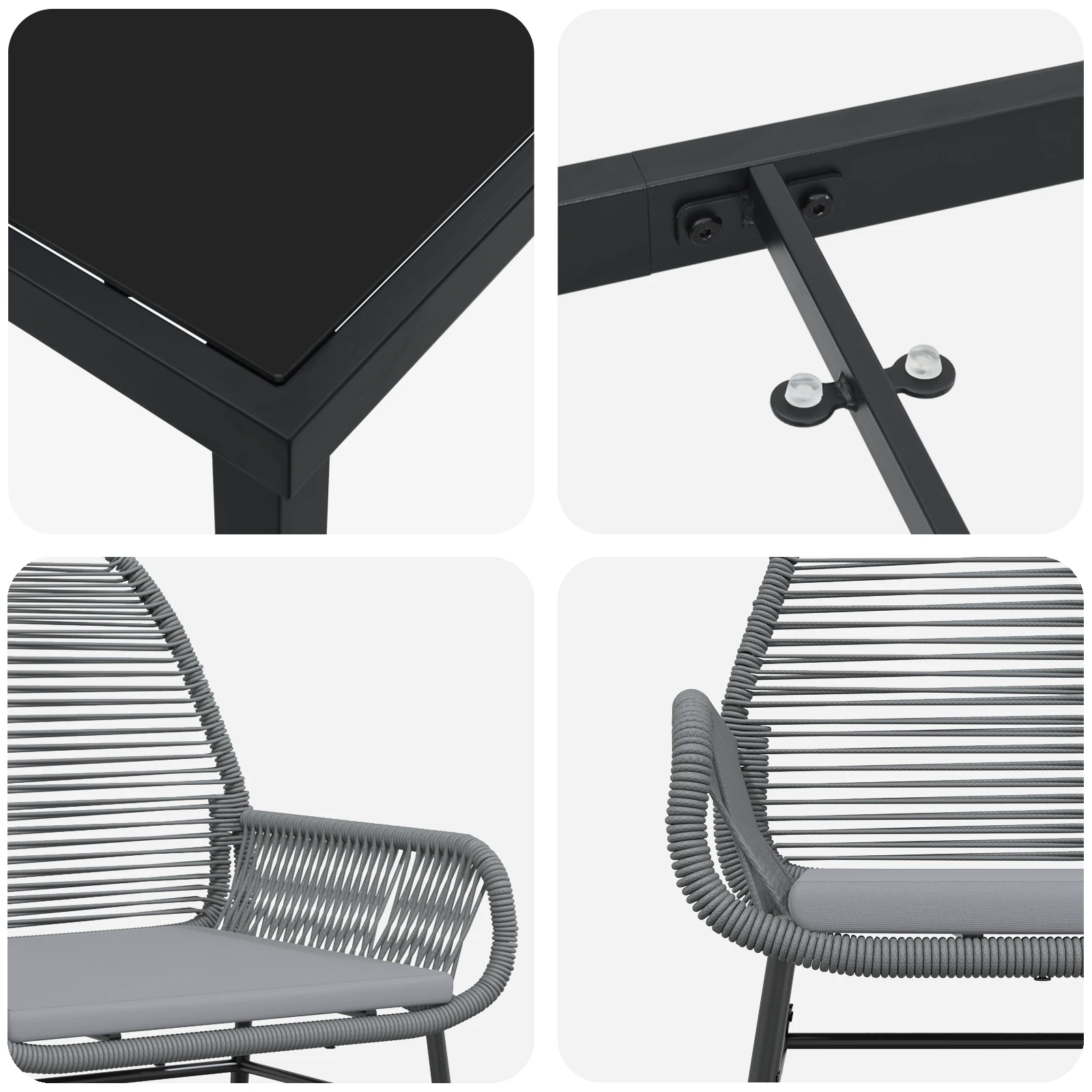 - Polirataninė išorė: Šis sodo valgomojo rinkinys turi tvirtą polirataninę medžiagą, puikiai tinkančią lauko naudojimui, atspari įvairiems orams. Poliratanas ne tik dizaino atžvilgiu, bet ir ilgaamžiškumo, ilgai išlaiko savo formą ir išvaizdą.