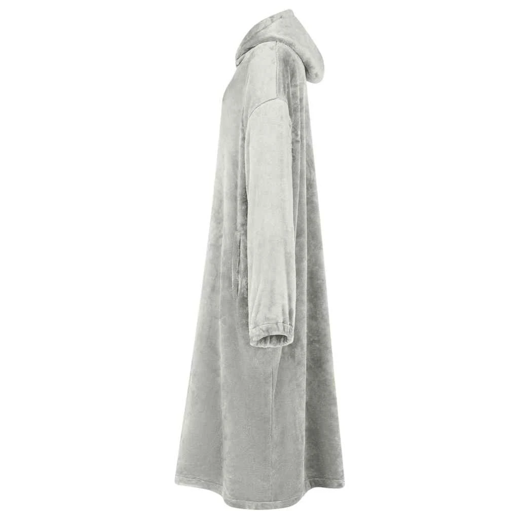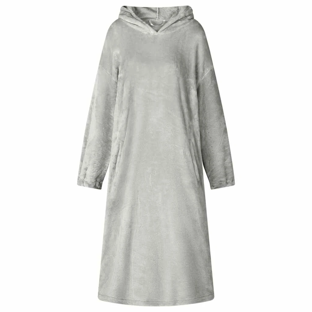 Šitas minkštas antklodės gobtuvas sujungia antklodės šilumą su kasdienio dėvėjimo patogumu. Jis sukurtas patalpoms ir pagamintas iš minkšto flanelio, kuris suteikia komfortą vėsiomis žiemos naktimis. Didelis, laisvas dizainas leidžia laisvę judėti ir tuo pat metu siūlo jaukų apkabinimą. Puikiai tinka poilsiui svetainėje ar skaitymui, jo stilinga ir funkcionali forma tinka visiems, ieškantiems komforto.