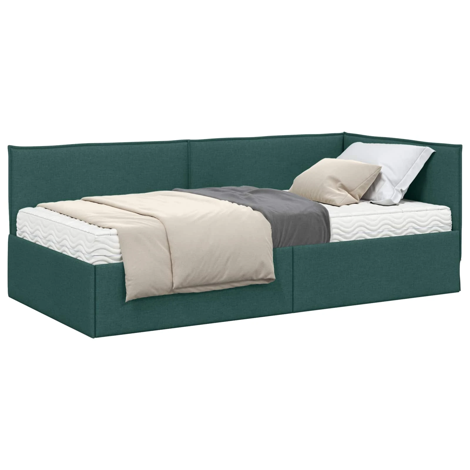 vidaXL Kampinė lovos konstrukcija su čiužiniu 2 pcs Žalia Aksomas