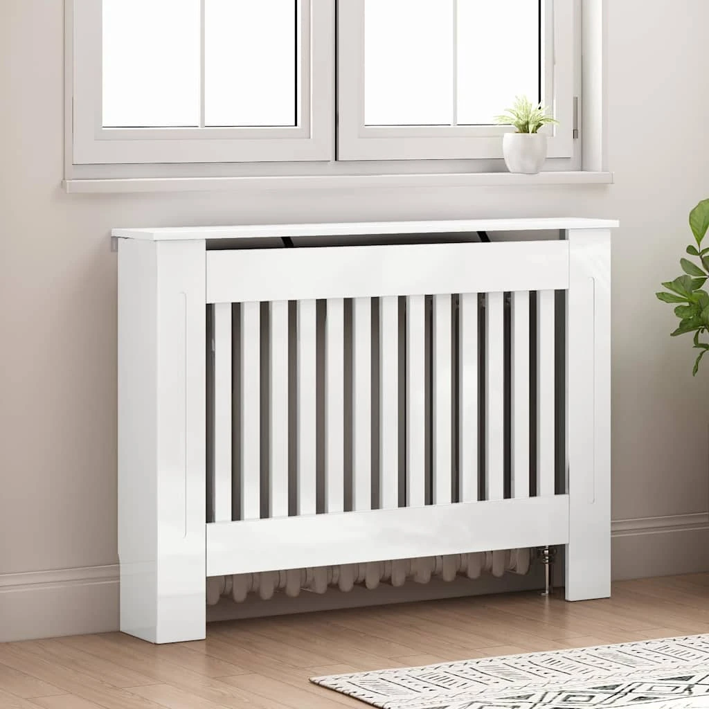 vidaXL Radiatoriaus dangtis Aukštai blizganti balta 112 x 19 x 81,5 cm