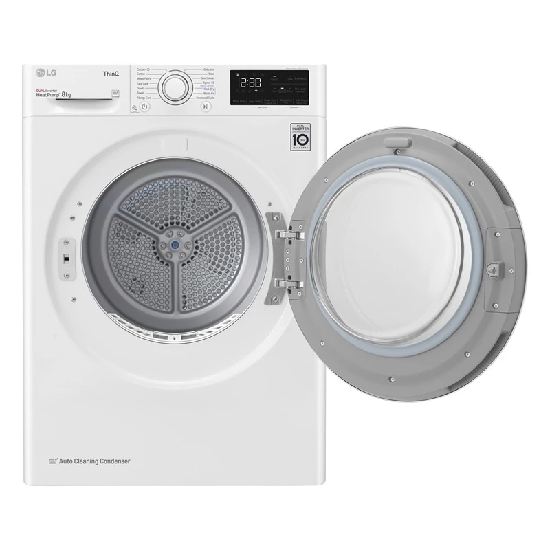 Prekės ženklas- LG. Modelis- RH80V3AV6N.ABWQKMR. Plotis- 60 cm. Gylis- 69 cm. Aukštis- 85 cm. Spalva- Balta. Svoris- 57 kg. Būgno talpa- 8 kg. Energinio efektyvumo klasė- D. Džiovinimo tipas- Kondensacinis. Metinės energijos sąnaudos- 211 kWh. Džiovinimo efektyvumo klasė- A. Programų skaičius- 14. Triukšmo lygis- 64 - 64dB. Valdymas- Sensorinis. Ekranas- Taip. Privaloma garantija- 24 mėn. Papildoma informacija- Batų džiovinimo krepšio komplektacijoje nėra..