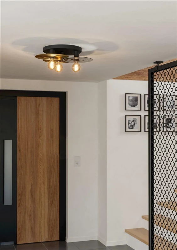 Prekės tipas- Šviestuvai. Artikulas- 44027. Tinkamas patalpai- Prieškambaris. Miegamasis. Svetainė. Stilius- Modernus. Šviestuvo tipas- Lubų. Montavimo tipas- Tvirtinamas prie lubų. Lemputės lizdas- E27. Maksimali galia- 120 W. Maksimalus lemputės galingumas- 40 W. Su lempute(-ėmis) komplekte- Ne. Lempučių skaičius- 3. Apsaugos laipsnis (IP)- IP20. Garantija- 24 mėn. Su valdymo pulteliu- Ne. Su judesio davikliu- Ne. Įtampa- 230 - 230V. Šviesos srauto reguliavimas- Ne. Prekės ženklas- Eglo. Ilgis- 53 - 53cm. Plotis- 53 - 53cm. Aukštis- 20 - 20cm. Gaubto spalva- Skaidri. Aukso. Pilka. Korpuso medžiaga- Metalas. Gaubto medžiaga- Stiklas. Korpuso spalva- Juoda.