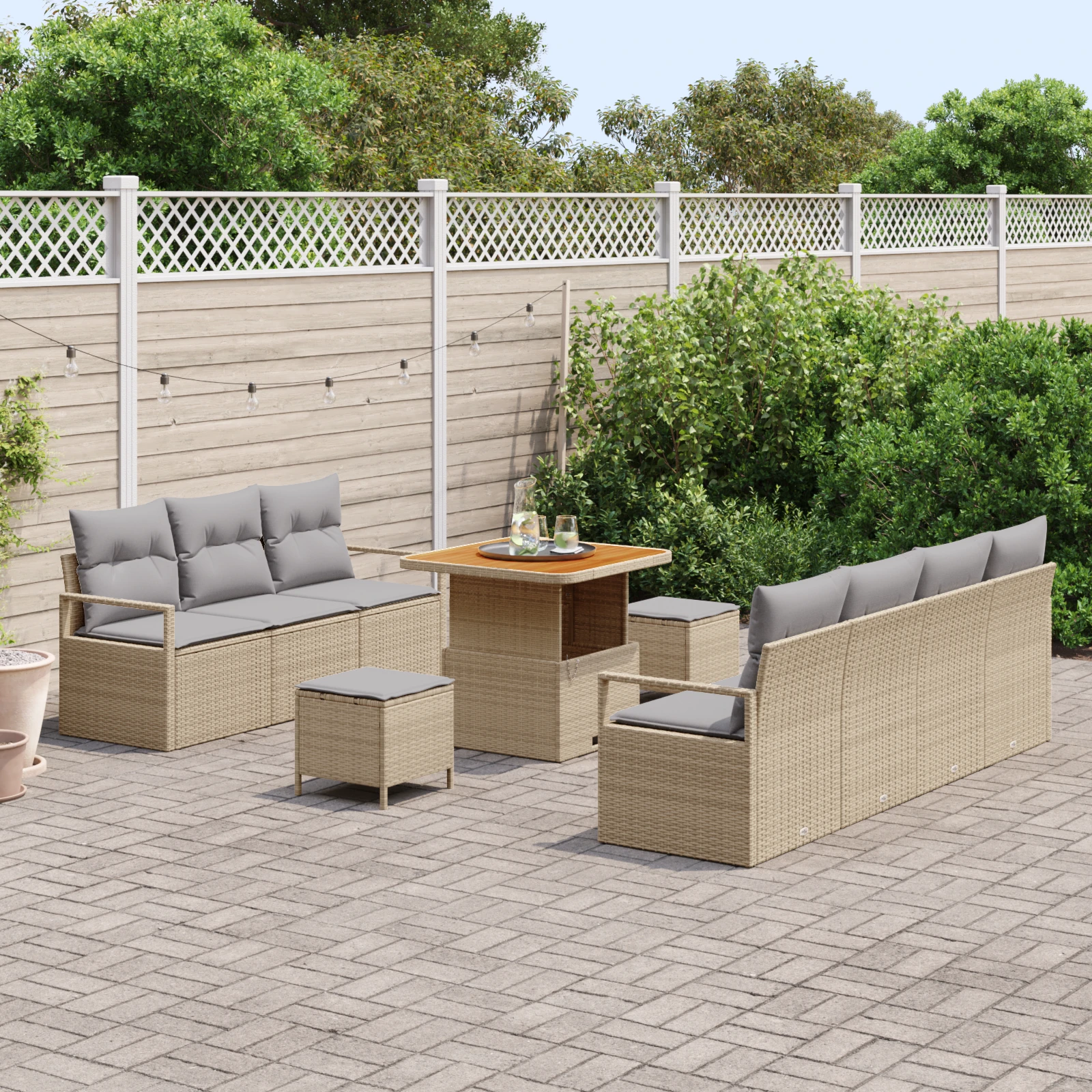 vidaXL Dārza dīvānu komplekts ar spilvenu 10 pcs Bēša un gaiši pelēka