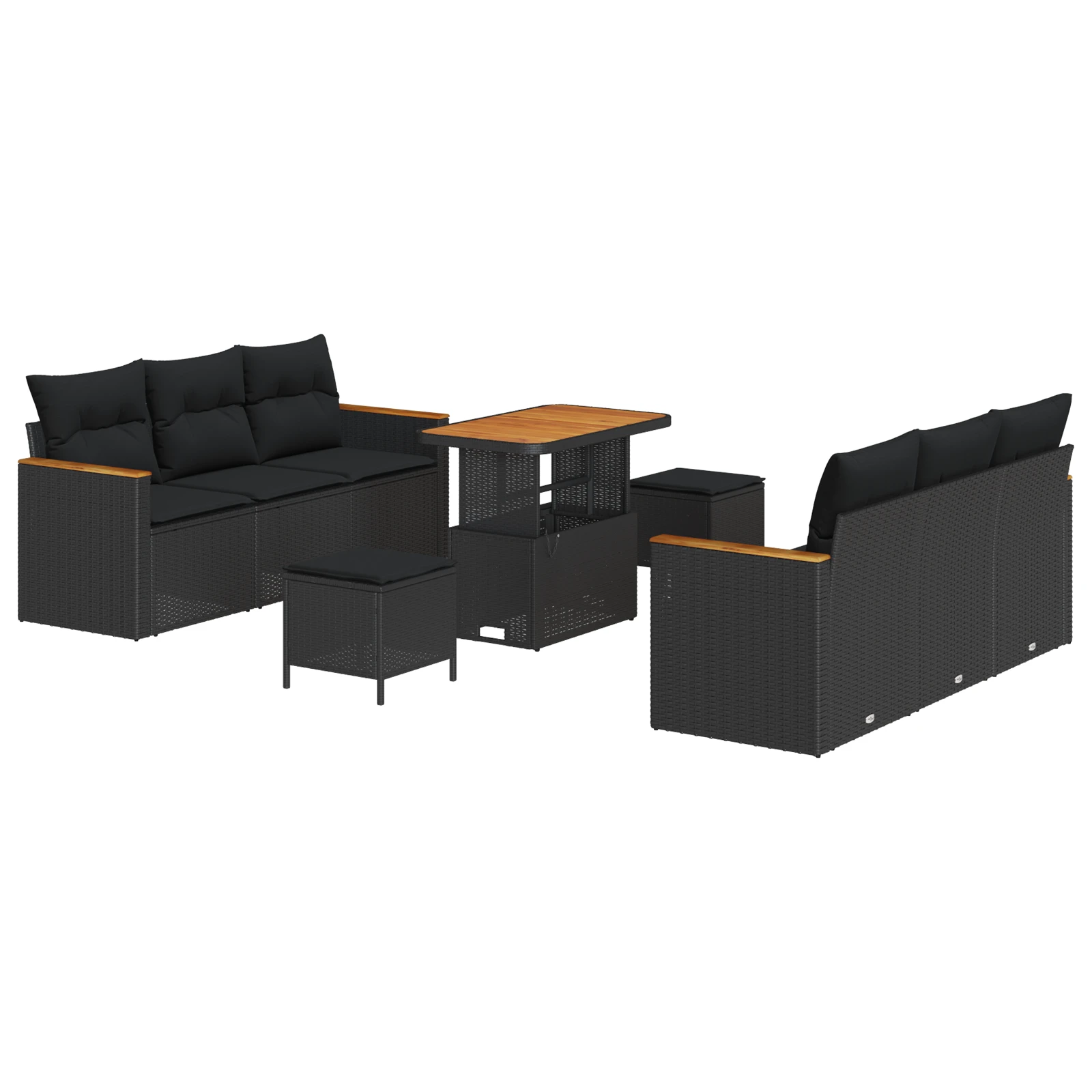 vidaXL Dārza dīvānu komplekts ar spilvenu 9 pcs Melns un Krēmkrāsa