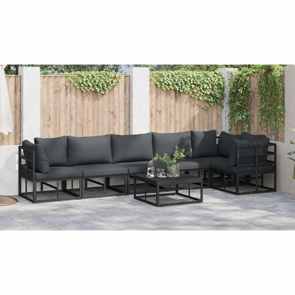 vidaXL Dārza dīvānu komplekts ar spilvenu 7 pcs Melna Alumīnijs