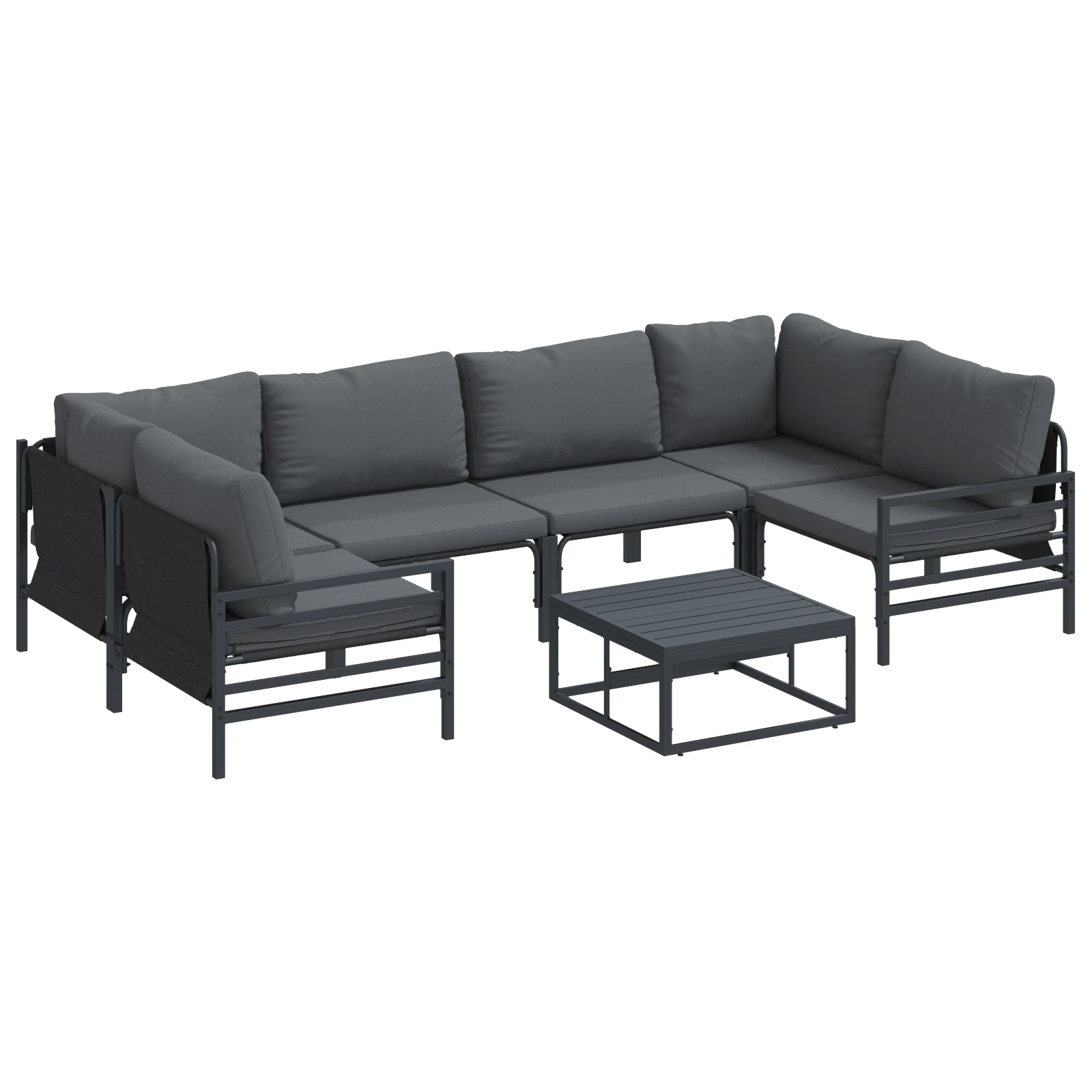 vidaXL Dārza dīvānu komplekts ar spilvenu 7 pcs Melna Tērauds