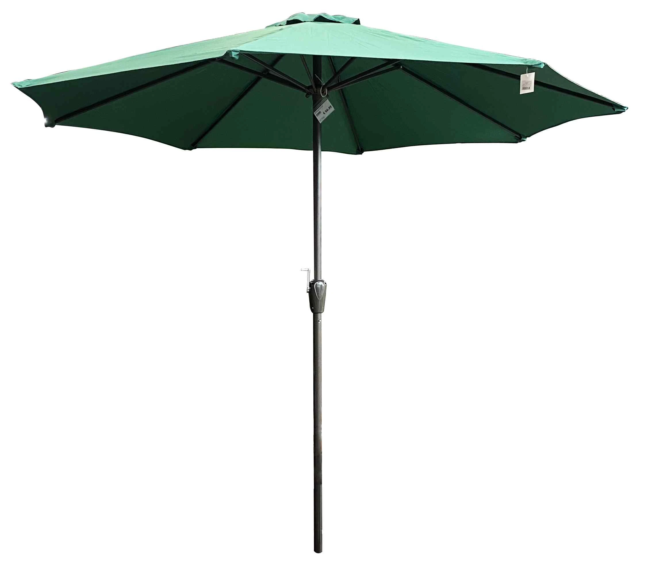 Funkcionāls dārza saulessargs ar izturīgu metāla karkasu un kvalitatīvu zaļu poliestera audumu, kas nodrošina efektīvu aizsardzību pret sauli. Saulessarga diametrs ir 2.7 metri, kas ir ideāli piemērots terasei, dārzam vai kafejnīcai, sniedzot plašu ēnojumu un komfortu karstās vasaras dienās. Praktiskā roktura sistēma ļauj viegli un ērti atvērt vai aizvērt saulessargu, savukārt izturīgie materiāli nodrošina ilgmūžību un stabilitāti arī vējainos laikapstākļos.
