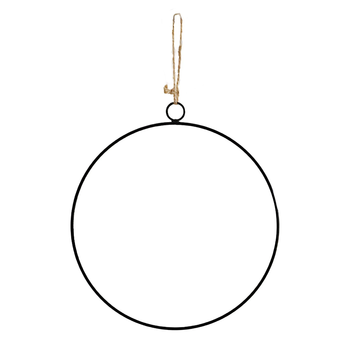 Pakarināms metāla aplis melnā krāsā. Var izmantot atsevišķi kā neuzkrītošu dekoru vai izrotāt ar LED virtenēm, zariem, ziediem u.c. Diametrs 30 cm.