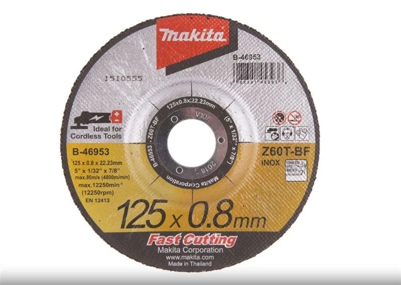 Zīmols- Makita. Biezums- 0.8 mm. Diametrs- 125 mm. Iekšējā cauruma diametrs- 22.23 mm. Maksimālais ātrums minūtē- 12250 rpm. Diska forma- Taisns. Apstrādes materiāls- Nerūsējošais tērauds.
