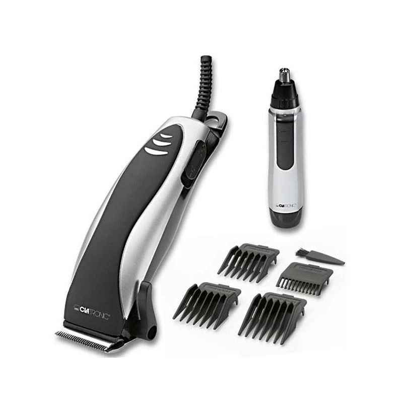 Zīmols- Clatronic. Modelis- HSM 3441 NE. Krāsa- Sudraba. Melna. Elektroapgāde- Elektriskā tīkla. Precizitāte- 3 mm. Garuma iestatījumi- 4. Uzgaļu skaits- 4. Garuma iestatījumu diapozons- 3 - 12mm. Var mazgāt ar ūdeni- Nē. Uzlādes līmeņa indikators- Nē. Baterijas indikators- Nē. Ar uzglabāšanas futlāri- Nē. Uzgaļu veids- Pilna izmēra trimmeris. Trimmeris degunam. Trimmeris ausīm. Uzgalis-ķemme. Komplekts- Matu griezējs. ausu un deguna matu griezējs. 4 uzgaļi.. Obligātā garantija- 24 mēn. Papildus informācija- Trimmeris matiem un bārdai°: Nerūsējošā tērauda asmeņi. 4 garuma iestatījumi (3. 6. 9. 12 mm). Soft-Touch rokturis. . Trimmeris degunam un ausīm: Barošanas sistēma: 1 x AA baterija. Nerūsējošā tērauda asmeņ..