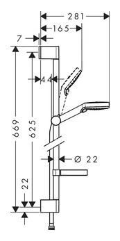 Zīmols- Hansgrohe. Krāsa- Sudraba. Svars- 1.35 kg. Materiāls- Nerūsējošais tērauds. Ar vannas maisītāju- Nē. Ar dušas galvu- Jā. Ar dušas šļūteni- Jā. Dušas galvas diametrs- 100 mm. Dušas plaukta garums- 669 - 669mm. Dušas galvas režīmu skaits- 2. Komplekts- Vario dušas galva. Dušas stienis. Dušas šļūtene. Ziepju trauks. Šļūtenes garums- 1.6 m. Taupīšanas funkcija- Nē. Obligātā garantija- 24 mēn. Papildus informācija- Dušas galvas strāvas veids: lietus (Rain). intensīvs lietus (IntenseRain). Ūdens caurlaidība 13.8 l/min. Dušas galvas turētāja leņķi iespējams fiksēt 45°. Aizsardzība pret dušas šļūtenes sapīšanu..