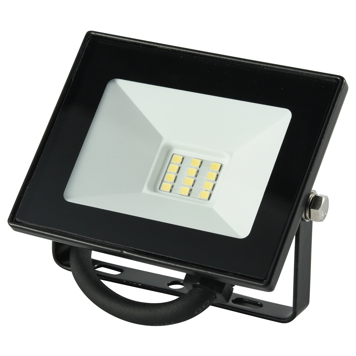 LED prožektors melnā krāsā. Maksimālā jauda 10 W, gaismas krāsas temperatūra 4000 k, gaismas plūsma 750 lm, gaismas stara leņķis 110°, aizsardzības klase IP65. Apkārtējās vides temperatūras diapazons no -20°C līdz +40°C.