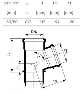 Zīmols- Magnaplast. Modelis- HTplus. Santehniskais savienojums, diametrs- 50 mm, 50 mm. Slīpuma leņķis- 87 - 87°. Elastīgs- Nē. Materiāls- Polipropilēns (PP). Krāsa- Balta. Paredzētas lietošanai- Iekštelpu kanalizācijai.