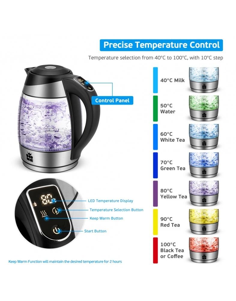Temperatūros pasirinkimas nuo 40°C iki 100°C 10°C žingsniais