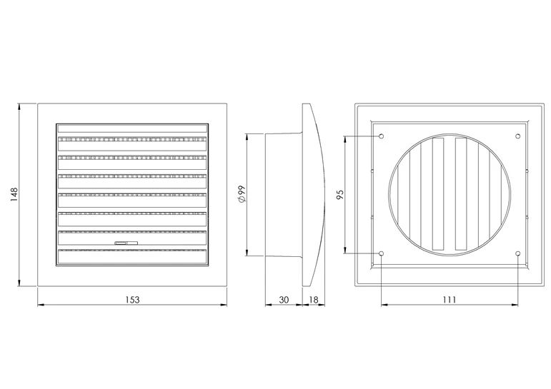 Ventiliacijos grotelės su žaliuzėmis EUROPLAST ND10Z. D100