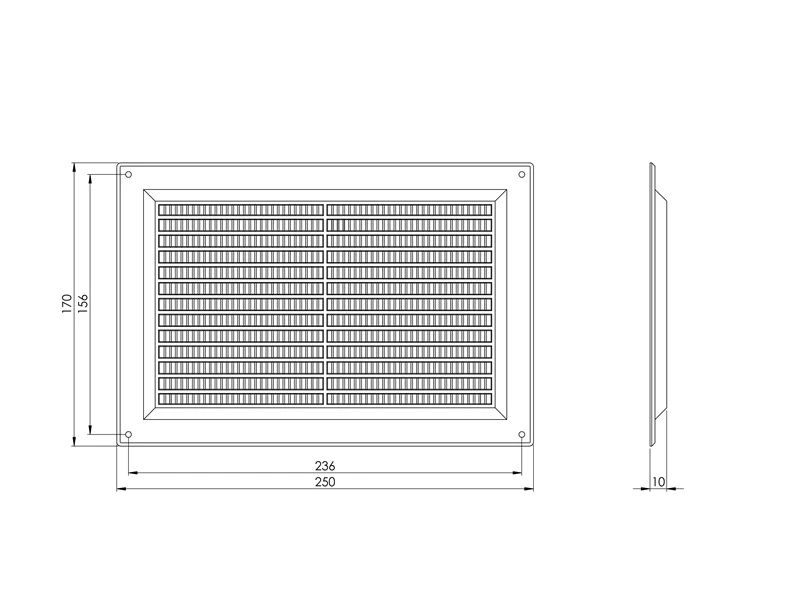 Ventiliacijos grotelės EUROPLAST VR2517P. 250 x 170 mm