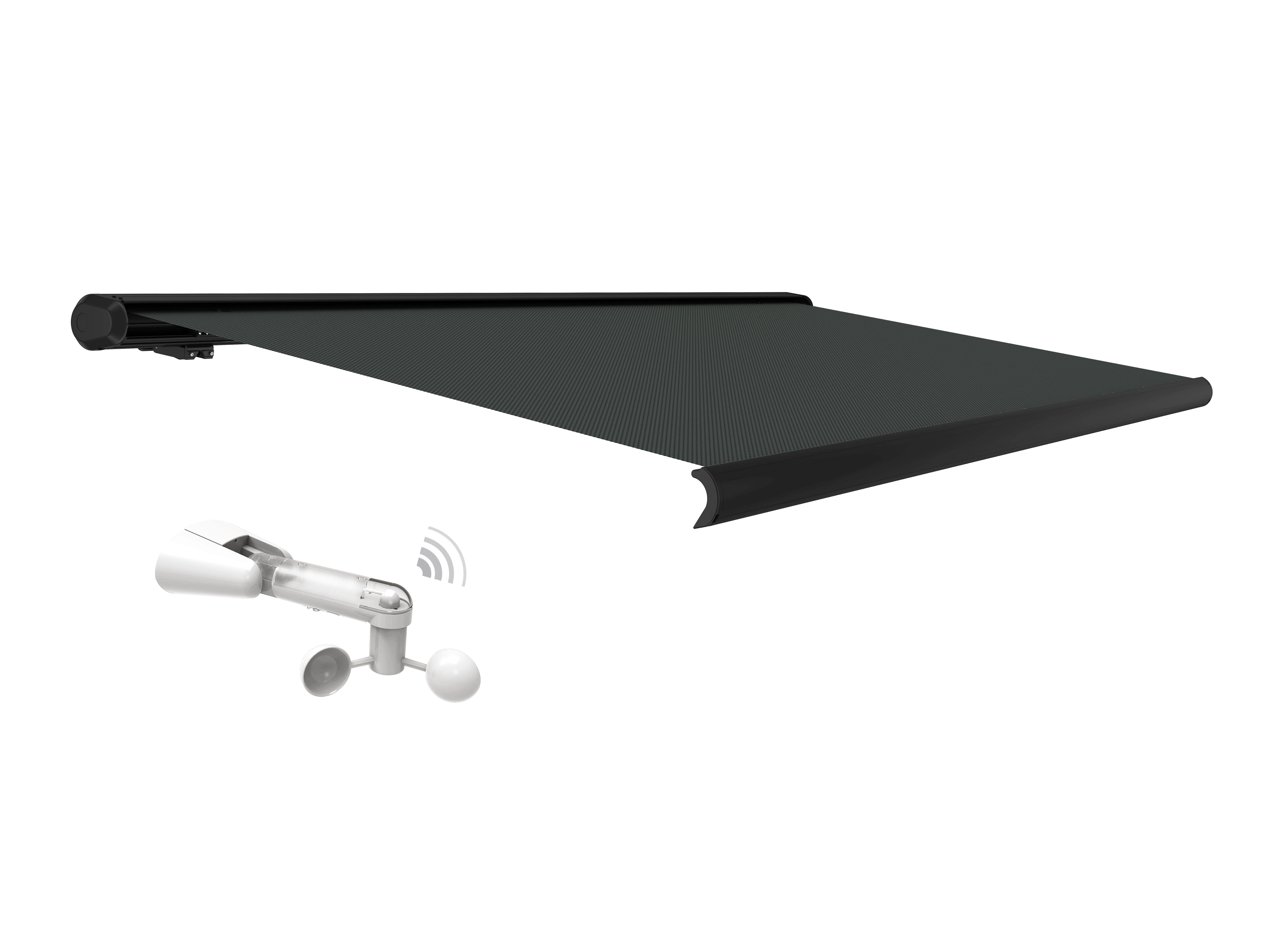 Pilnas kasetnes motorizēta markīze ar sensoru lieliski pasargās balkonu vai terasi no saules, lietus un vēja. Pilnas kasetnes markīze nozīmē, ka ievilktā stāvoklī alumīnija kasetne pilnībā nosedz markīzes audumu, aizsargājot to pret mitrumu, netīrumiem un izbalēšanu. Markīzei ir iestatīts optimālais slīpums ~15° leņķī, bet nepieciešamības gadījumā to var regulēt par 15 - 30°. Sensors nodrošina, ka vētras gadījumā markīze automātiski aizvērsies, lai izvairītos no bojājumiem, un atvērsies saulainā laikā, lai pasargātu no saules. Markīzes rāmis un profili izgatavoti no alumīnija, auduma pārsegs no 280 g/m2 poliestera ar poliuretāna pārklājumu, kas nodrošina ilgstošu aizsardzību pret sauli un mitrumu. Komplektā vēja /saules sensors, tālvadības pults un sienas kronšteini. Markīzes izmērs izlaistā veidā 3 x 4 m, markīzes auduma uztīšanas rullīša diametrs 78 mm, priekšējā profila izmērs 120 x 64 mm, atvēršanas / aizvēršanas mehānisma profilu izmēri 61 x 32 mm un 53 x 28 mm.
