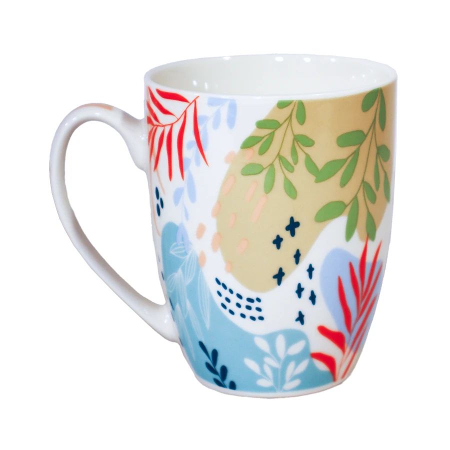 Keramikas krūze Nature ar dabas iedvesmotu rakstu apvieno krāsainus augu motīvus un modernu dizainu, radot mājīgu un atsvaidzinošu noskaņu dzēriena baudīšanai. Kvalitatīvais materiāls ir piemērots ikdienas lietošanai, viegli kopjams un izturīgs, kā arī droši lietojams mikroviļņu krāsnī un trauku mazgājamajā mašīnā. Tilpums 350 ml, izmērs 10.5 x 8 cm.