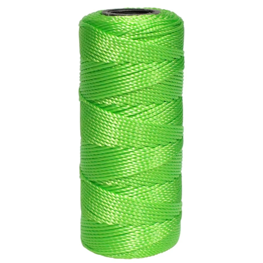 Neoninė žalia susukta polipropileno (PP) virvė. Privalumai - stipri, plūduriuojanti medžiaga, neįgeria vandens ir nesugeria drėgmės, atspari chemikalams ir nusidėvėjimui. Virvės skersmuo 1 mm, ilgis 100 m.