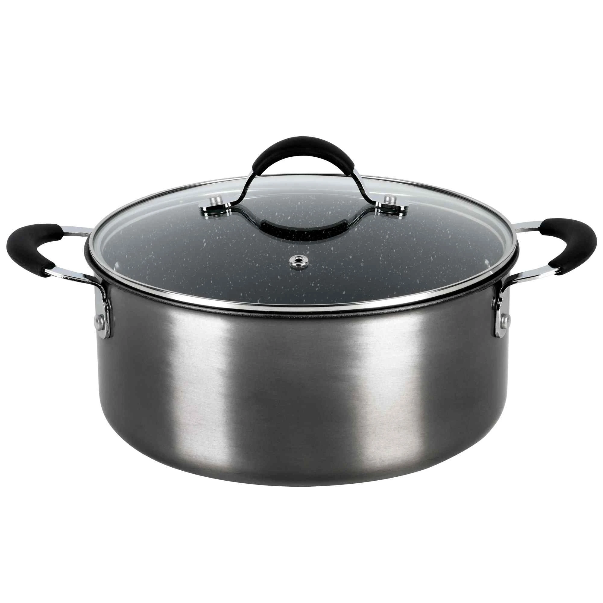 Alumīnija katls ar divslāņu pfluon pārklājumu. Piemērots gāzes, elektriskajām, indukcijas, keramiskajām un halogēnajam plītīm. Komplektā stikla vāks, izgatavots no karstumizturīga stikla. Vākam ir rokturis, kas izgatavots no nesildoša materiāla, tas ir praktisks un izturīgs. Izmērs 240 x 110 mm. Tilpums 4.80 l.
