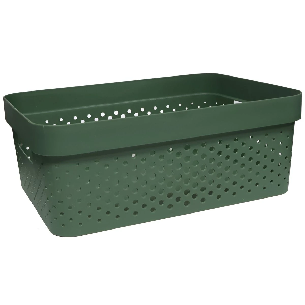 Skaists un prakstisks uzglabāšanas grozs ar perforētu virsmu. Iederēsies jebkurā mājsaimniecības telpā. Izgatavots no kvalitatīvas plastmasas.