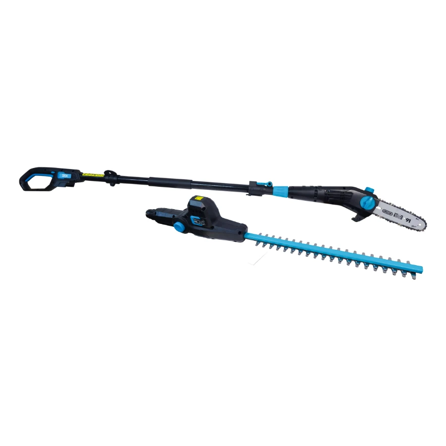 Teleskopiskās dzīvžoga šķēres un motorzāģis ir kompakta un efektīva iekārta grūti aizsniedzamu dzīvžogu un zaru kopšanai. Apvieno dzīvžoga šķēres un motorzāģi ar teleskopisku kātu, ļaujot ērti veikt griešanas un apzāģēšanas darbus augstumā. Iekārta ir aprīkota ar mīkstu rokturi, plecu siksnu un automātisku eļļošanas sistēmu ķēdei, nodrošinot komfortu un uzticamību ilgstošā lietošanā.
