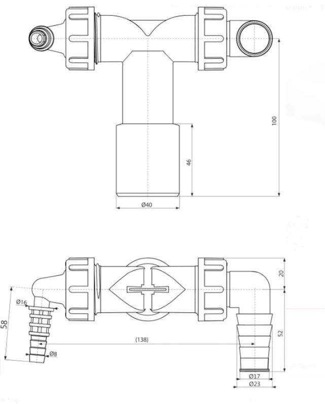 Sifonas su atšaka Aniplast praustuvui ir skalbimo mašinai