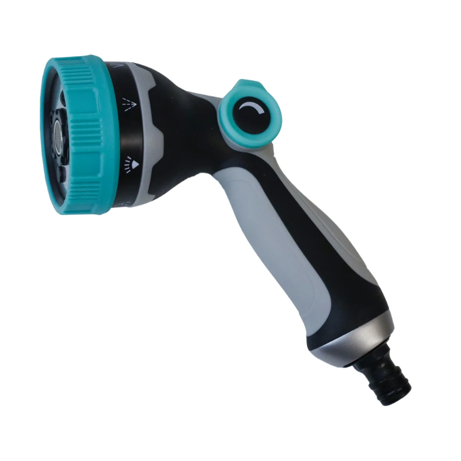 Augstas kvalitātes dārza laistīšanas pistole Haterra ar 8 smidzināšanas režīmiem, kas ļauj pielāgot ūdens strūklu dažādiem darbiem – no maigās miglas līdz spēcīgam strūklas režīmam. Korpuss izgatavots no cinka sakausējuma, ABS plastmasas un TPR gumijas – izturīga, ergonomiska un ar neslīdošu pārklājumu ērtai lietošanai. Piemērota ziedu kopšanai, dārza laistīšanai un tīrīšanai.
