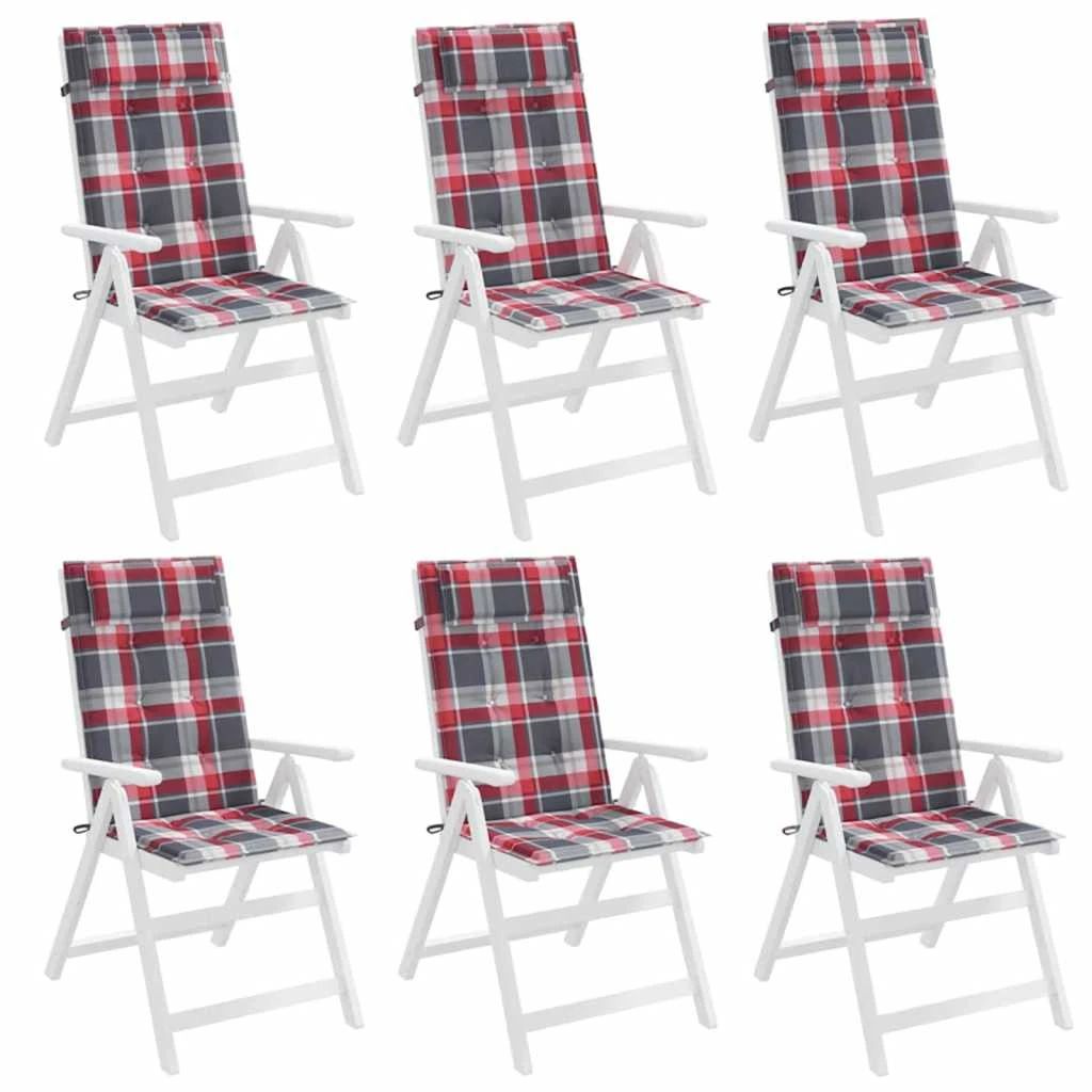 vidaXL dārza krēslu spilveni, 6 gab., sarkani rūtots oksforda audums