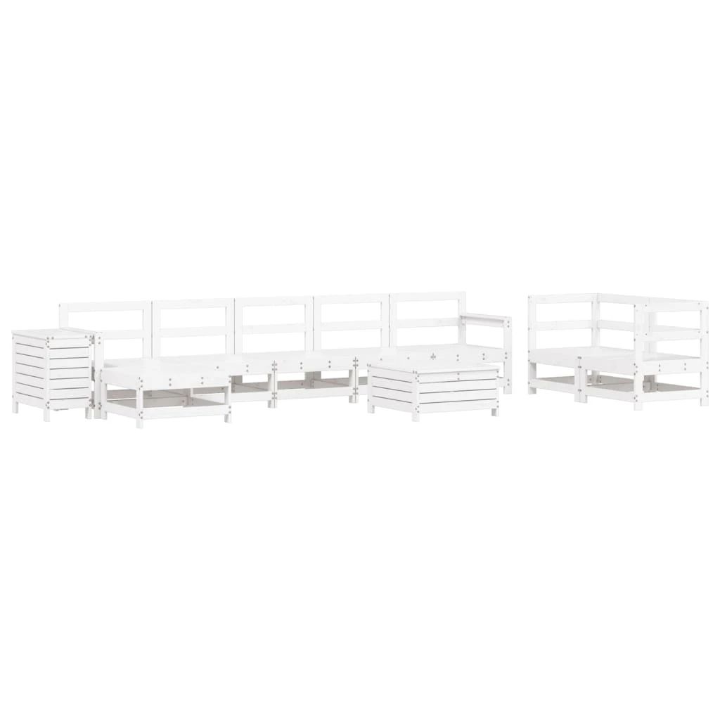 vidaXL 10-daļīgs dārza dīvānu komplekts, balts priedes masīvkoks