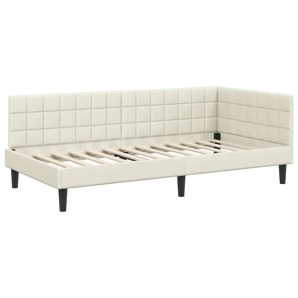 vidaXL Stūra gultas rāmis ar matrači 2 pcs Krēmkrāsa Samts