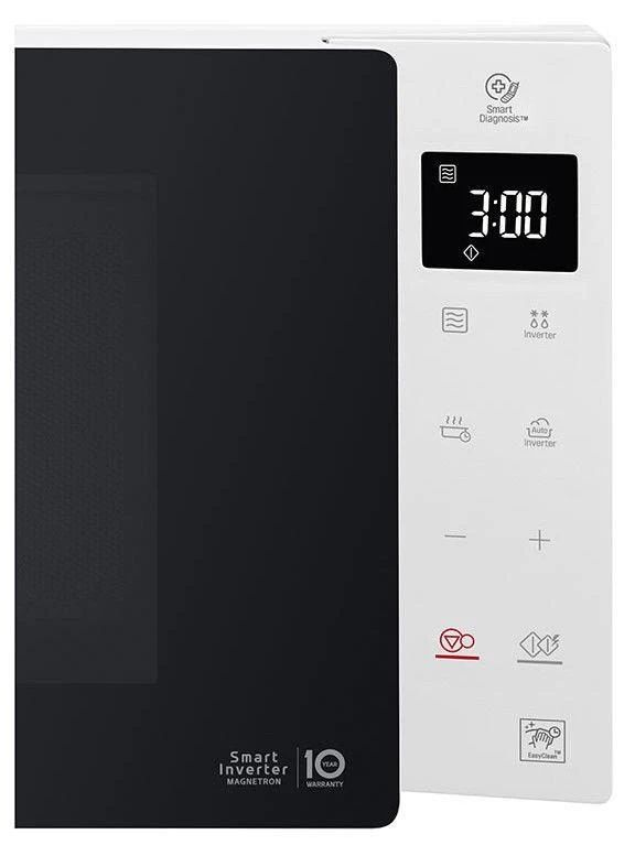 Zīmols- LG. Modelis- MS23NECBW. Iebūvējams- Nē. Brīvi novietots- Jā. Platums- 47.6 cm. Dziļums- 34.6 cm. Augstums- 27.2 cm. Tilpums- 23 l. Svars- 8.6 kg. Krāsa- Balta. Jauda- 1000 W. Jaudas līmeņi- 6. Iekšējais pārklājums- Antibakteriālais pārklajums. Vadība- Sensoru. Ar apgaismojumu- Jā. Grils- Nē. Funkciju skaits- 8. Ekrāns- Jā. Taimeris- Jā. Atkausēšanas funkcija- Jā. Aizsardzība pret pārkaršanu- Jā. Bērnu drošības funkcija- Jā. Konvekcija- Nē. Obligātā garantija- 24 mēn.