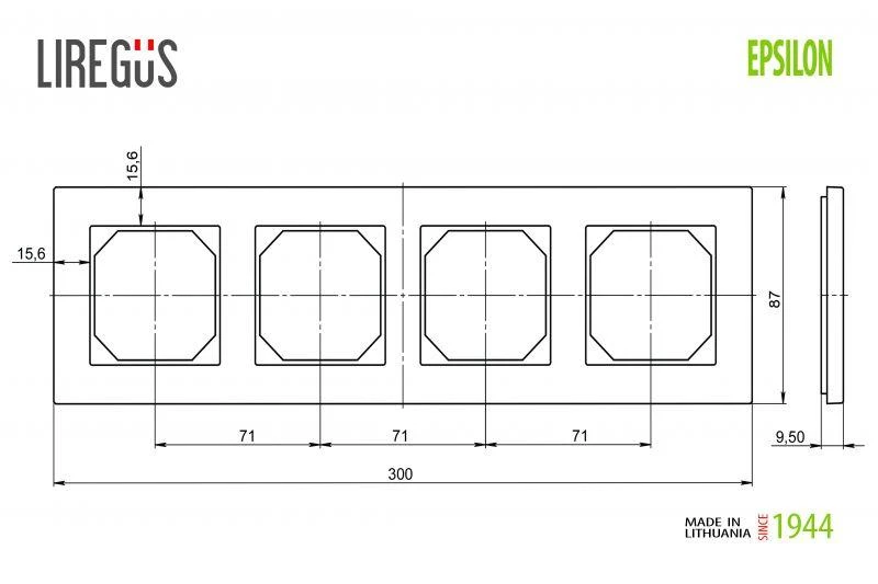 Keturvietis rėmelis LIREGUS EPSILON. juodas matinis stiklas