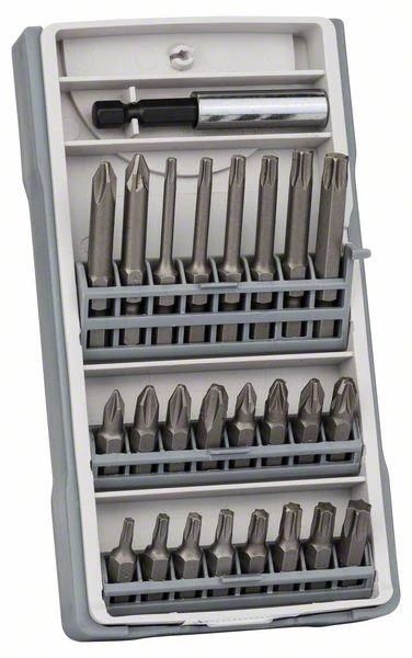 Zīmols- Bosch. Artikuls- 2607017037. Garums- 155 mm. Materiāls- Metāls. Elastīgs- Nē. Obligātā garantija- 24 mēn. Komplekts- PH1. PH2 (2x25mm). PH3. PZ1. PZ2 (2x25mm). PZ3. T10. T15. T20 (2x25mm). T25. T27. T30. T40. PH1x49mm. PZ2x49mm. Adapteris.