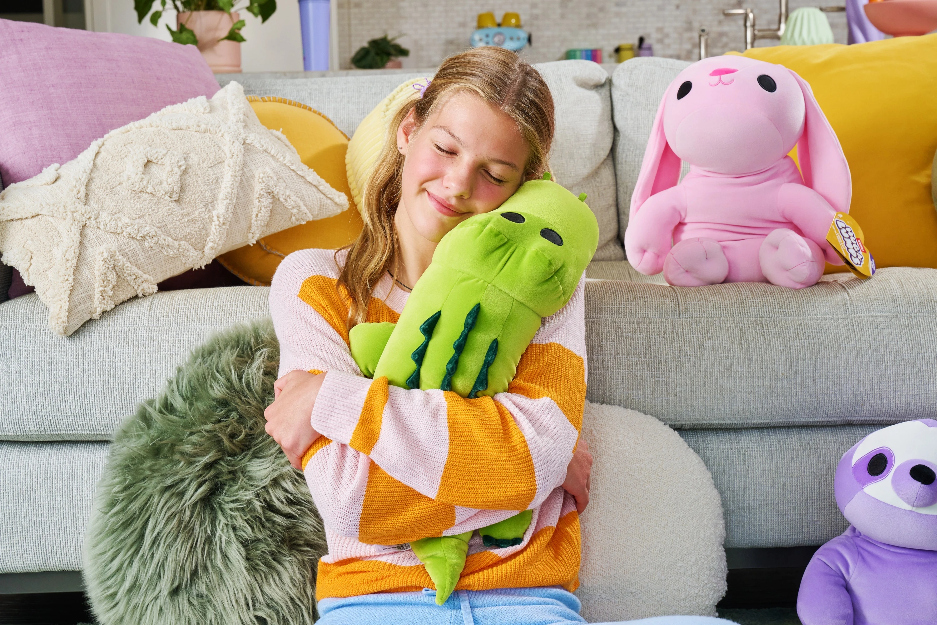 Leiskis į mielų būtybių šalį su „Hug-A-Lumps“! Išsirink vieną iš 8 neįtikėtinai mielų gyvūnėlių, kurių kiekvienas sveria net 1,5 kg, taip suteikdamas dar daugiau malonumo ir komforto. Žaislai pagaminti iš itin minkšto ir švelnaus pliušo, tai tikrų tikriausias raktas į atsipalaidavimą!